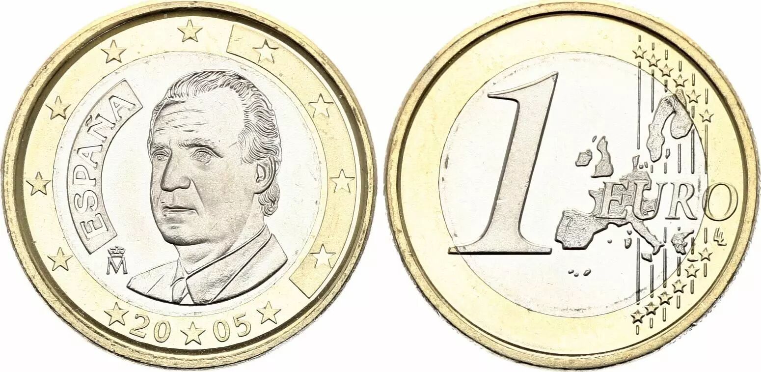 Cette pièce commémorative de 1 euro a été frappée en Espagne en 2005. Elle est dédiée à la représentation de Juan Carlos I, alors roi d'Espagne.