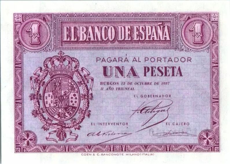 Billet Espagne 1 Peseta - Armoirie - Burgos - 1937