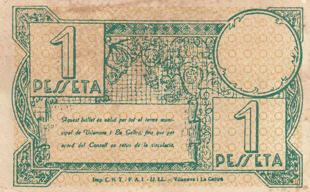 Billet Espagne 1 Peseta - Vilanova i La Geltru - 1937