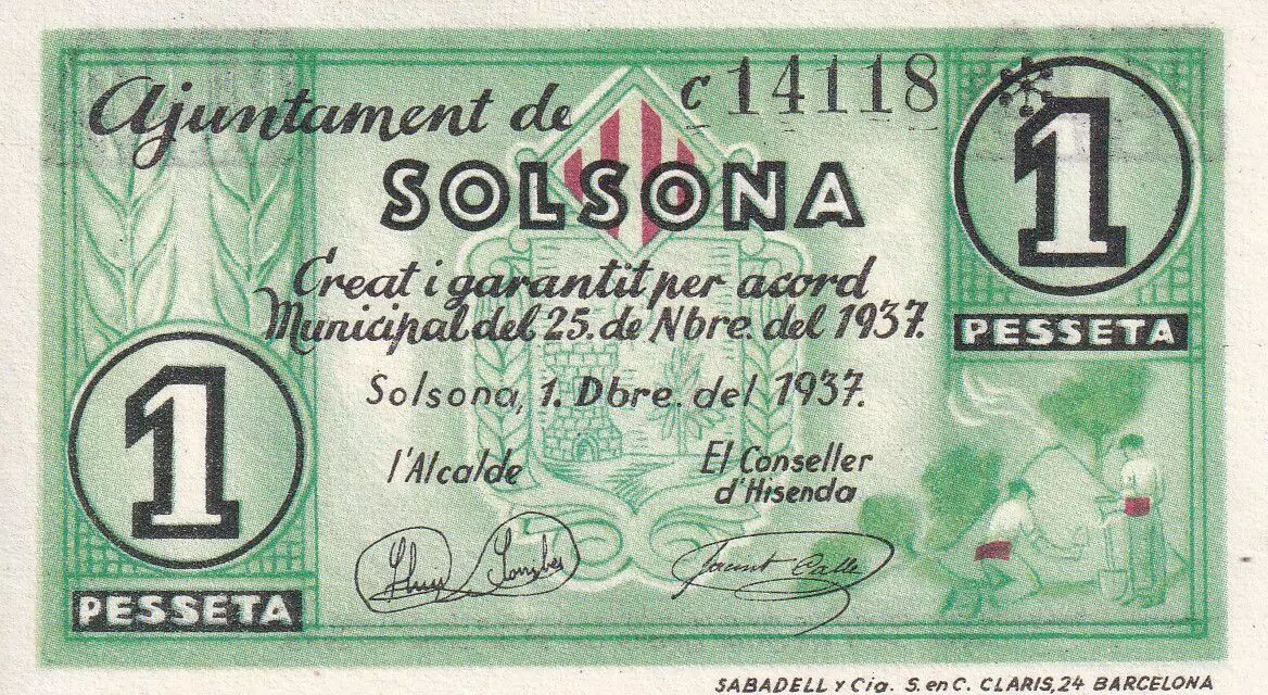 Billet Espagne 1 Pesseta - Solsona - 1937