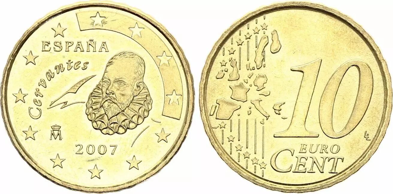 L'avers de la pièce, commun à toutes les pièces de 10 centimes euro, arbore les symboles de l'Union européenne. Le revers, spécifique à l'Espagne, présente un motif distinctif. L'année d'émission, 2007, est également indiquée sur la pièce. L'institut émetteur n'est pas nommément indiqué sur la pièce elle-même, mais il s'agit de l'institution financière responsable de la frappe des pièces en Espagne.