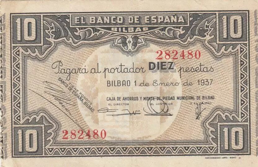 Billet Espagne 10 Pesetas - Caja de Ahorros y Monte de Piedad Municipal de Bilbao - 1937 - P.S562h