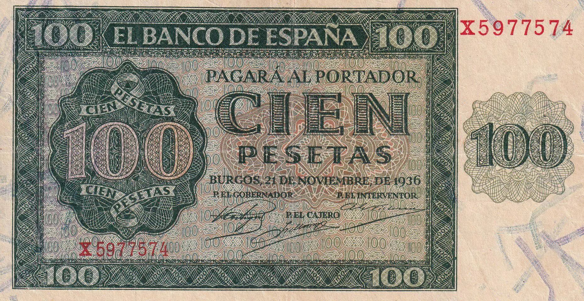 Billet Espagne 100 Pesetas - Cathédrale de Burgos - 1936 - P.101
