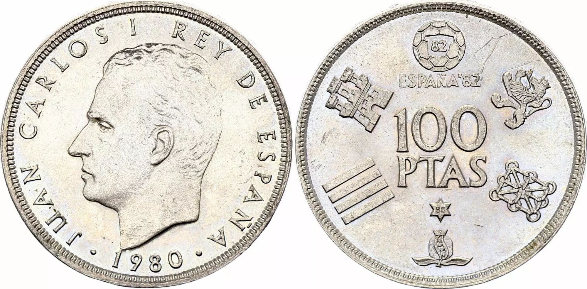 Accueil > Monnaies du monde > Monnaies d'Europe > Espagne > Espagne 100 Pesetas Coupe du Monde de Football - 1982