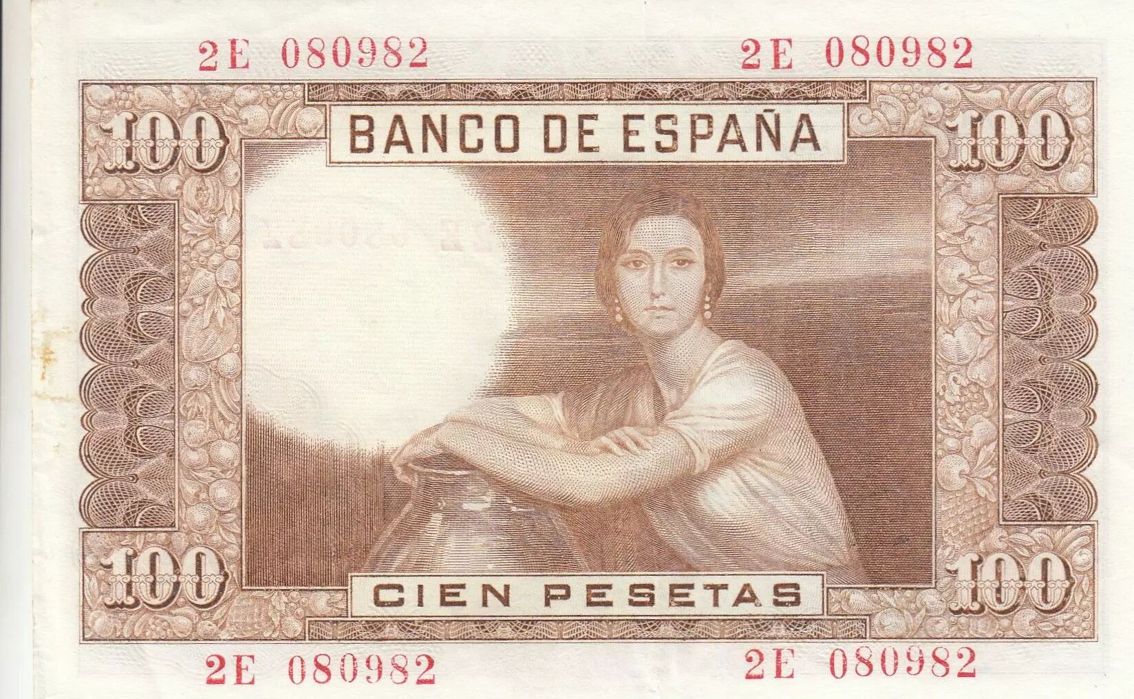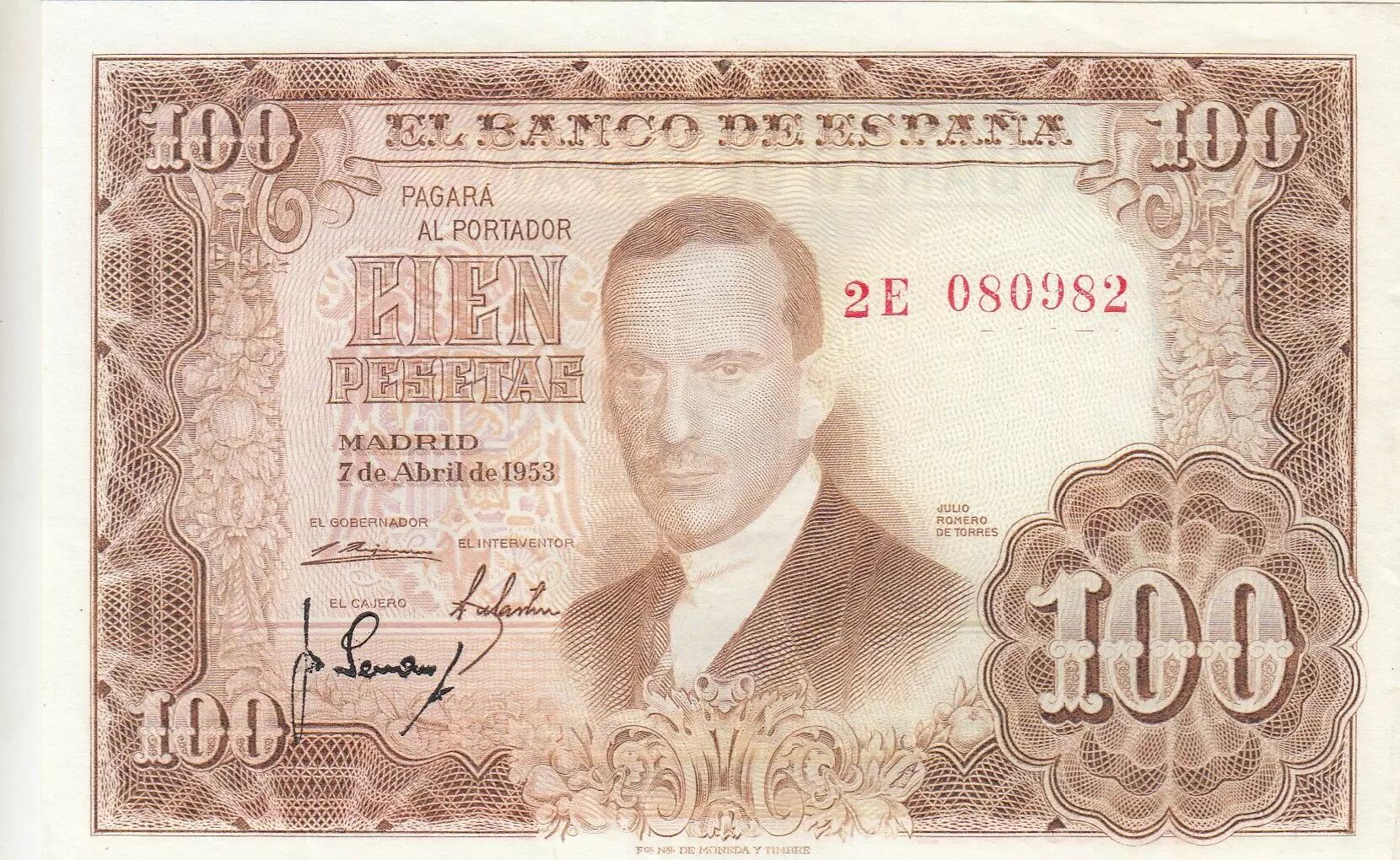 Accueil > Billets du Monde > Billets d'Europe > Espagne > Espagne 100 Pesetas - J.R. de Torres - 07-04-1953 - Série 2E