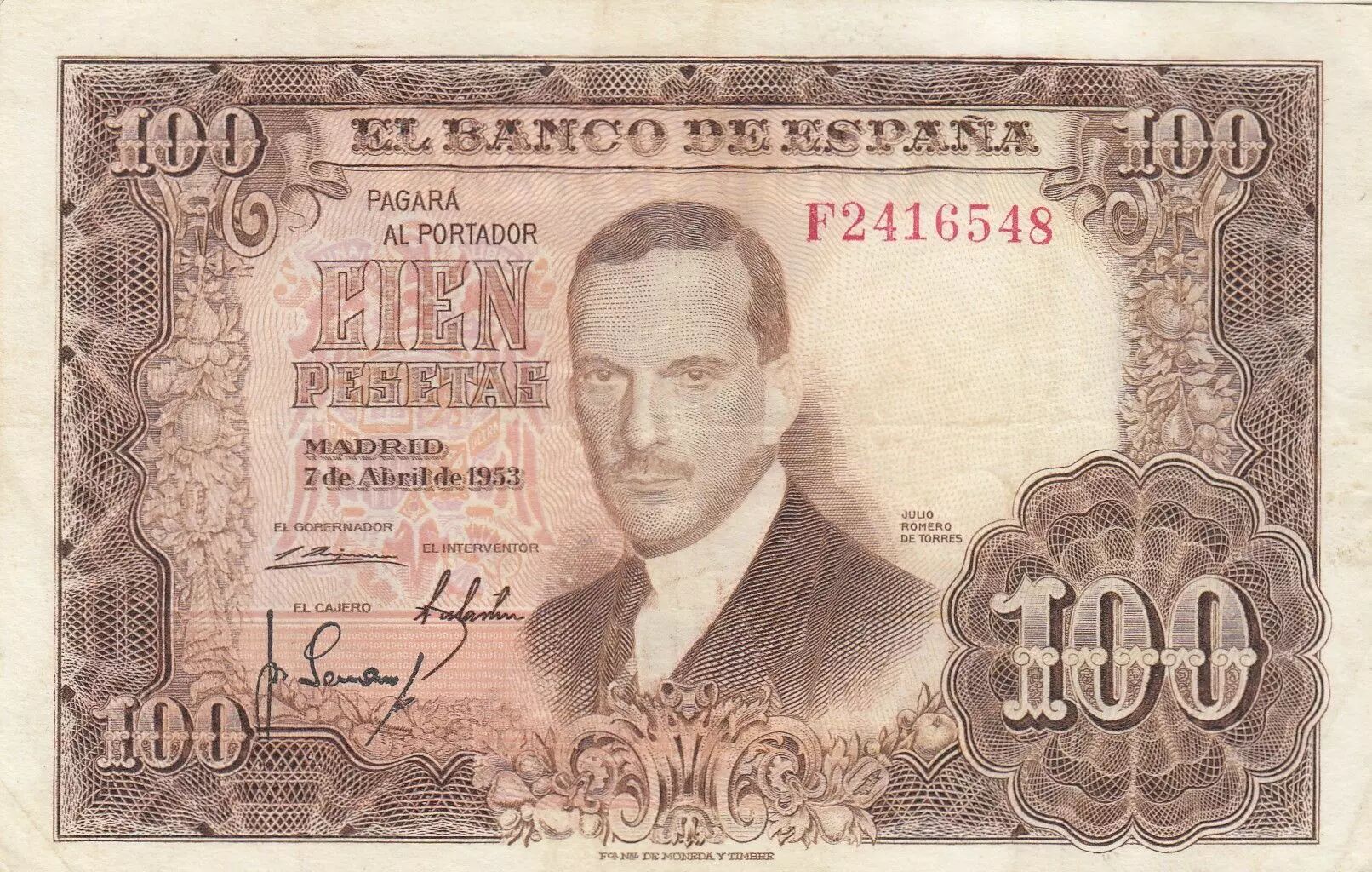 Accueil > Billets du Monde > Billets d'Europe > Espagne > Espagne 100 Pesetas - J.R. de Torres - 07-04-1953 - Série F2