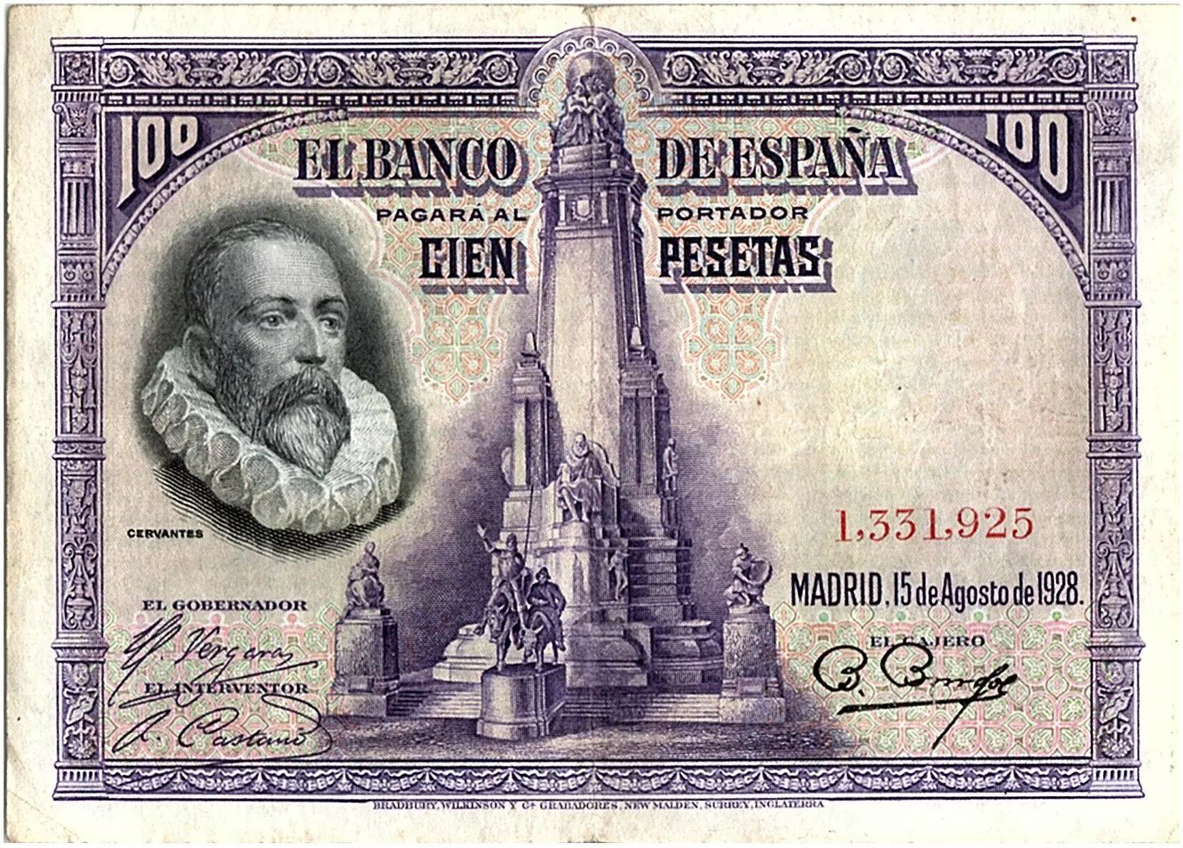 Billet Espagne 100 Pesetas M. De Cervantes - 1928 - Sans série - TTB - P.76