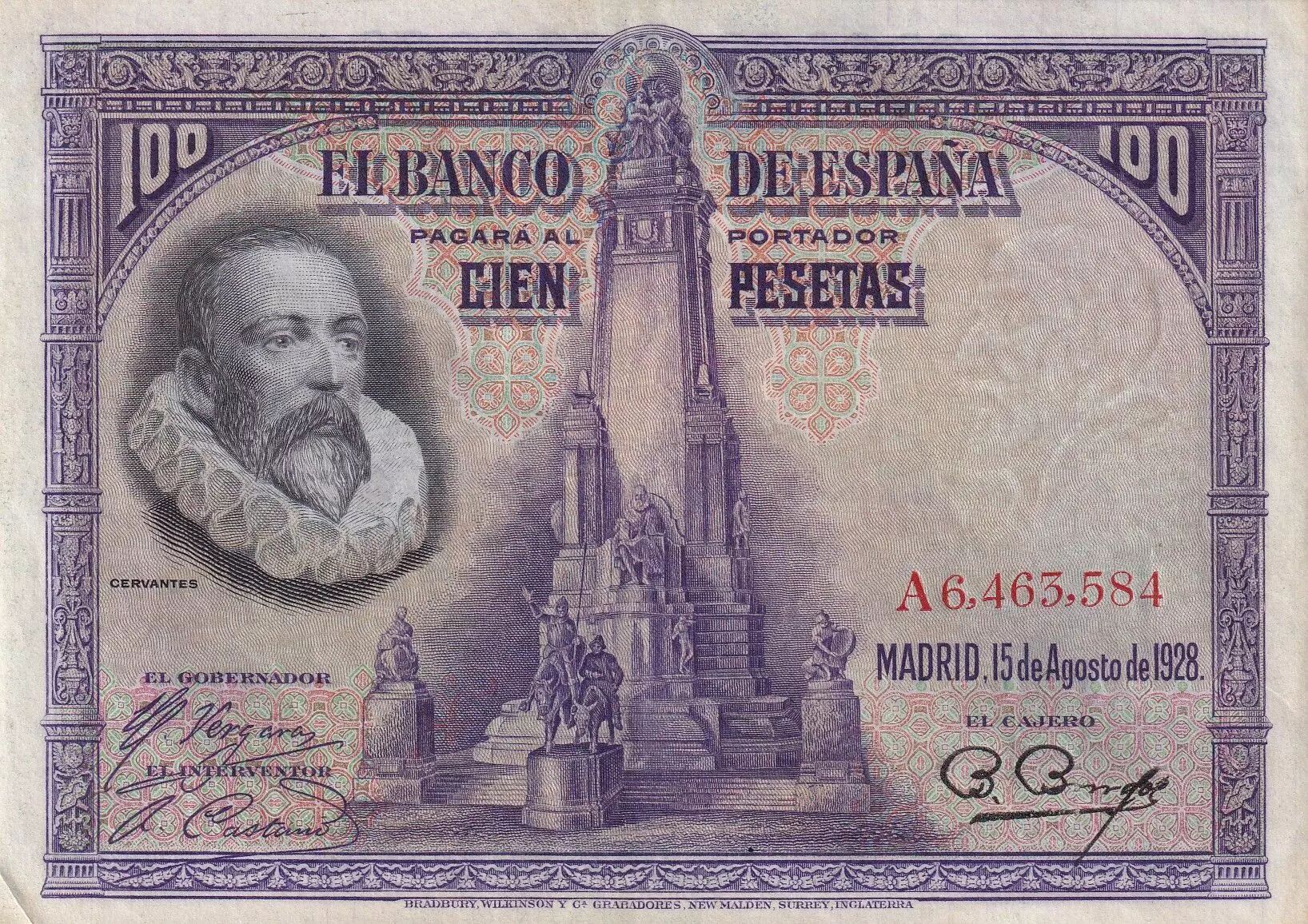 Accueil > Billets du Monde > Billets d'Europe > Espagne > Espagne 100 Pesetas M. De Cervantes - 1928 - Séries Variées - TB+ à TTB - P.76