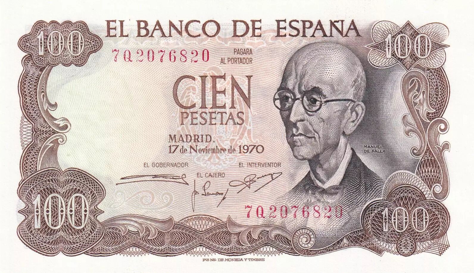 Accueil > Archivage > Espagne 100 Pesetas - Manuel de Falla - 1970 Série 7Q