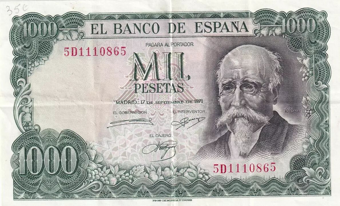 Billet Espagne 1000 Pesetas 1971 - José Echegaray - Madrid - Série 5D