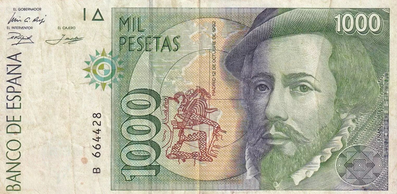 Accueil > Archivage > Espagne 1000 Pesetas - Francisco PIZARRO Herman CORTES - 1992