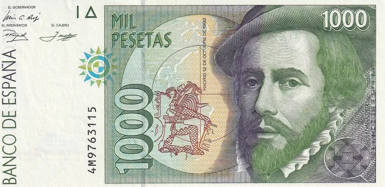 Accueil > Archivage > Espagne 1000 Pesetas - Hernan Cortes - 1992 - Série 4M - P.163
