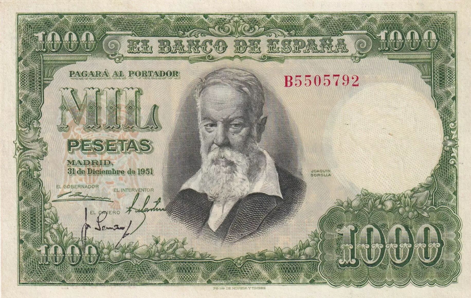 Accueil > Archivage > Espagne 1000 Pesetas - Joaquin Sorolla - 1951 - Série B