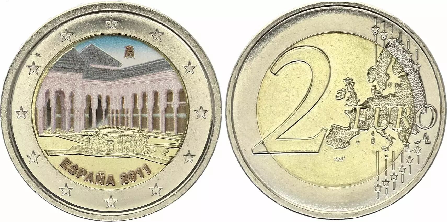 Pièce Espagne 2 Euros - Alhambra de Grenade - Colorisée - 2011