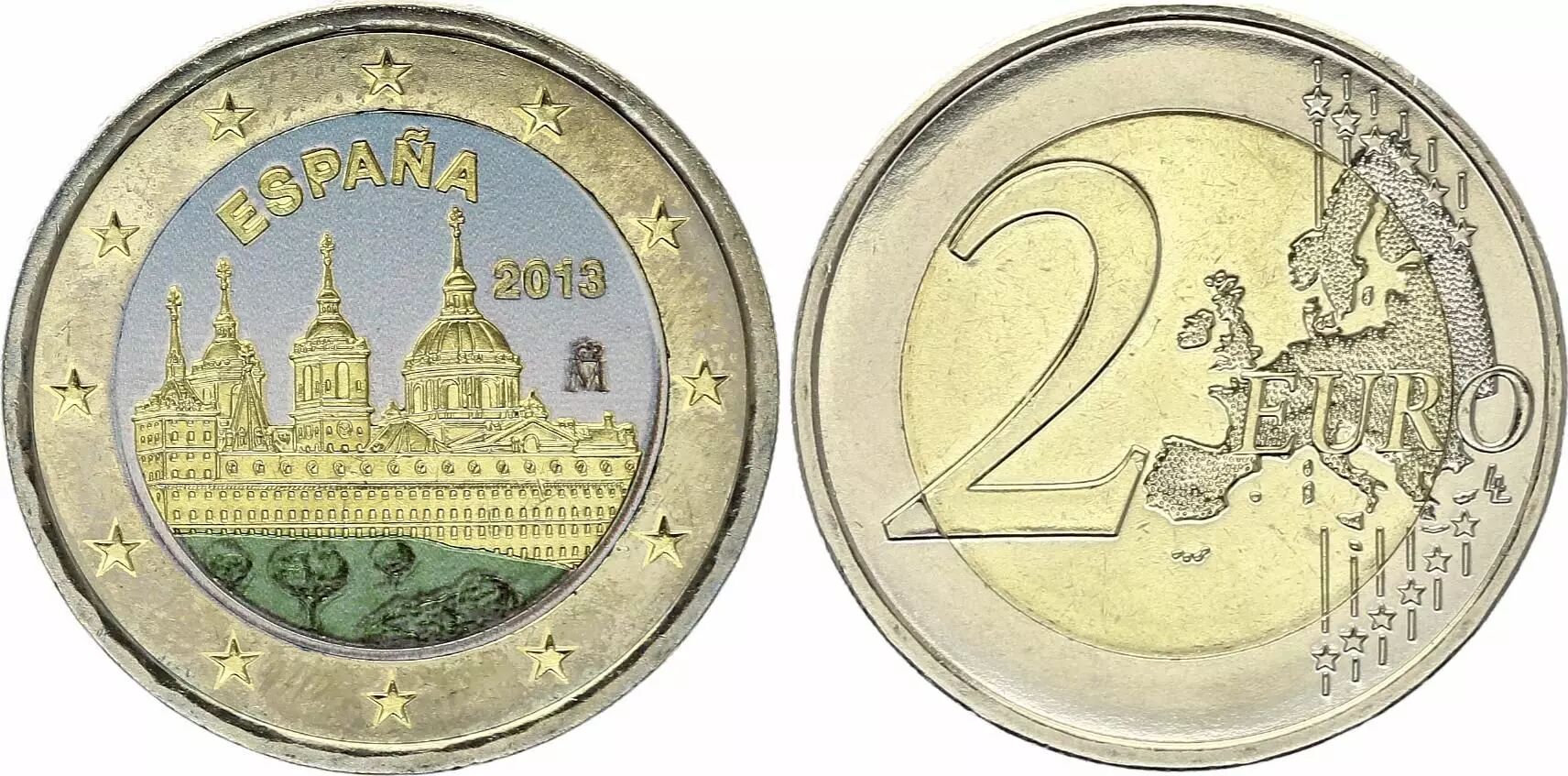 Pièce Espagne 2 Euros - Escurial - Colorisée - 2013