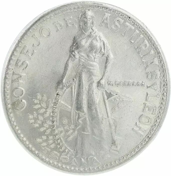 Pièce Espagne 2 Pesetas Consejo de Asturias y León -1937