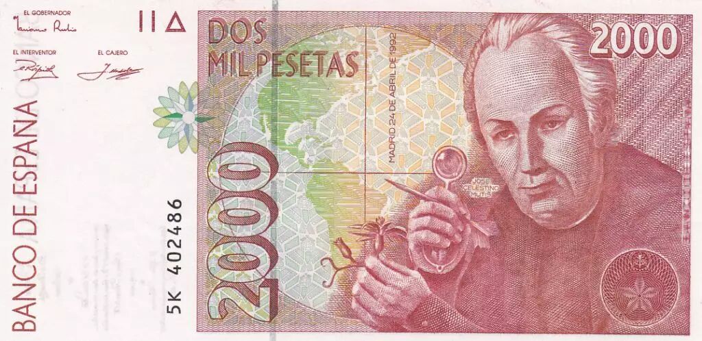 Accueil > Billets du Monde > Billets d'Europe > Espagne > Espagne 2000 Pesetas - José Celestino Mutis - 1992 (1996)