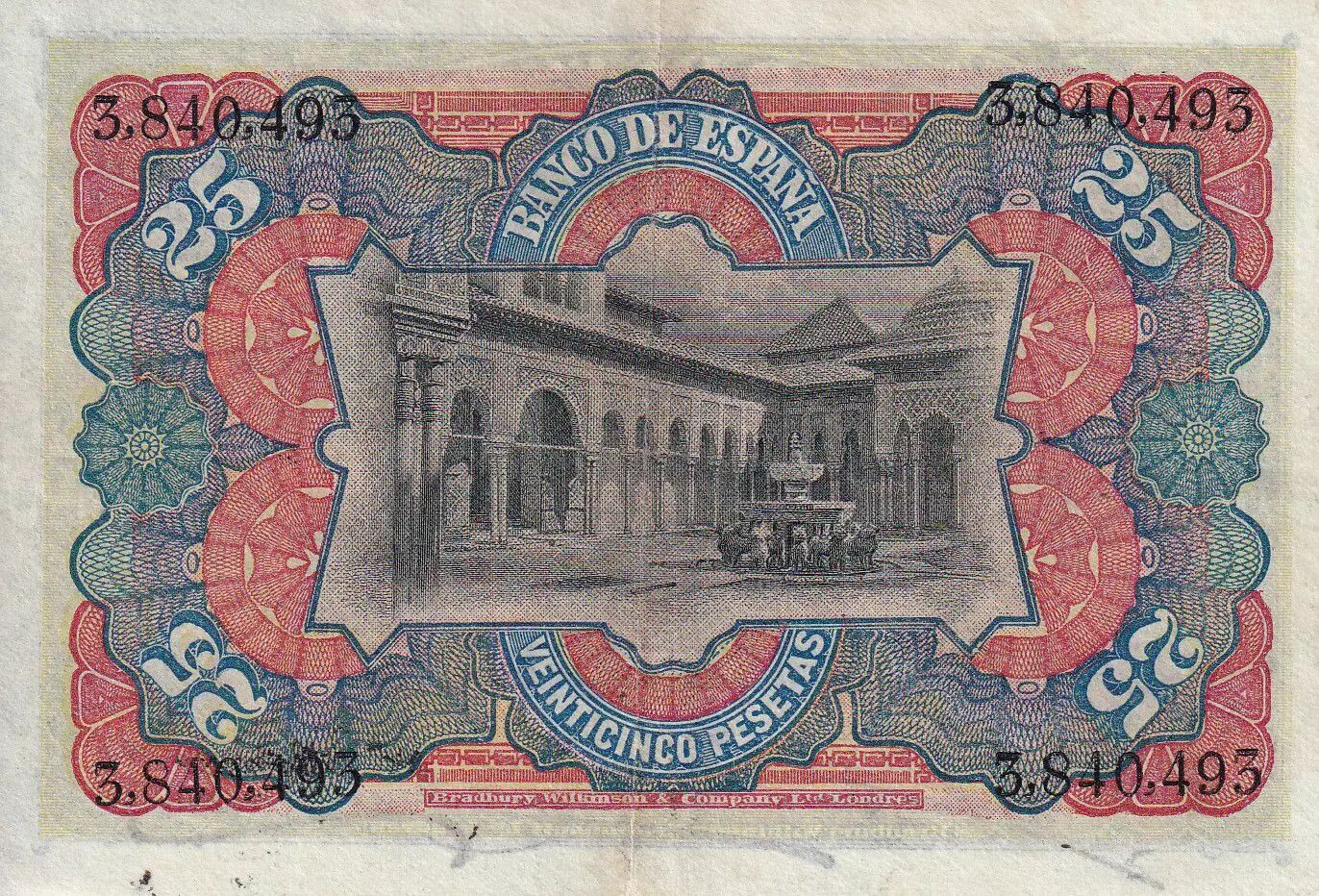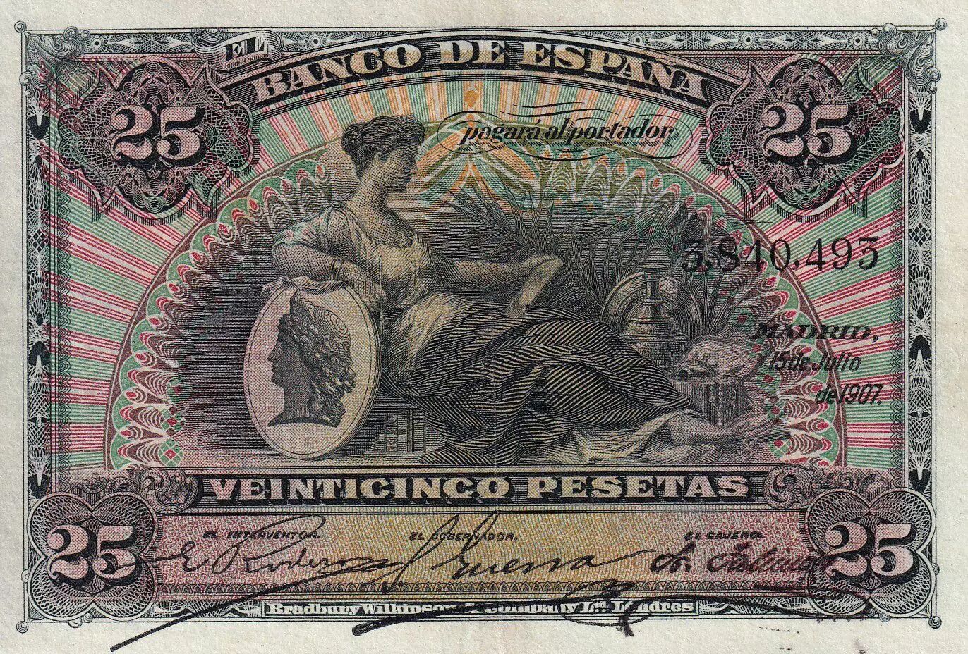 Billet Espagne 25 Pesetas - Femme assise - 1907 - P.62a