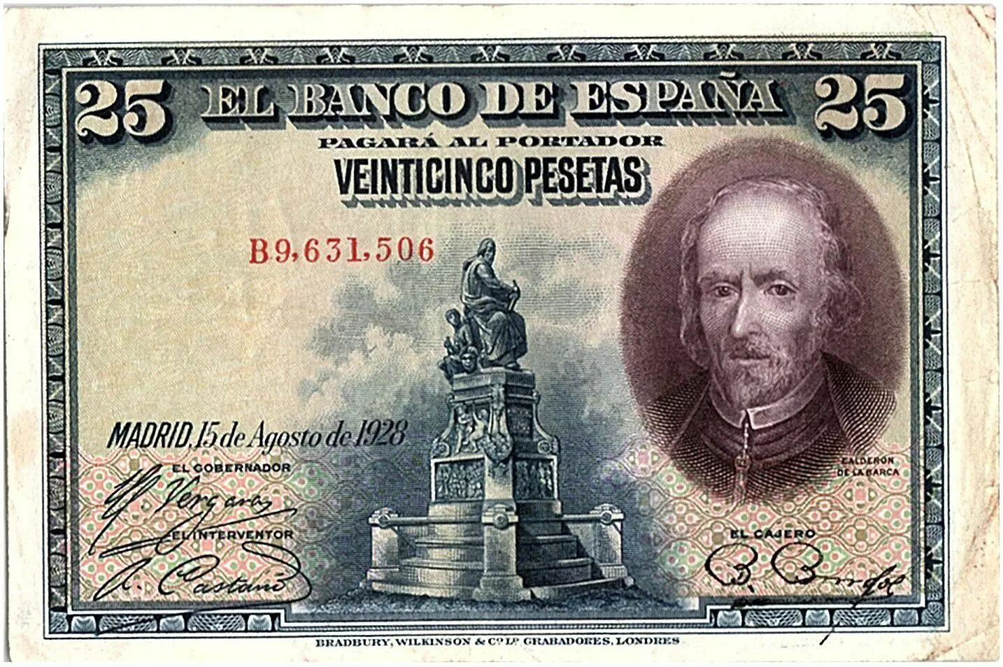 Billet Espagne 25 Pesetas P. Calderon de la Barca - 1928 - Série B - TTB - P.74