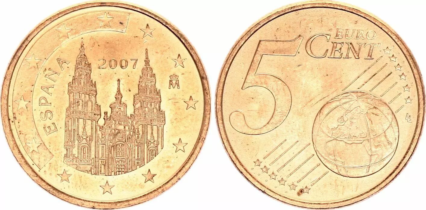 L'avers de la pièce, spécifique à l'Espagne, présente un motif ou une représentation symbolique du pays. Le dessin pourrait inclure des éléments historiques, culturels ou emblématiques de l'Espagne. Le revers de la pièce est commun à toutes les pièces de cinq centimes d'euro et affiche la valeur faciale, soit 5 centimes, ainsi qu'une représentation géographique de l'Europe.