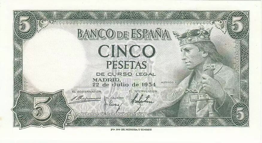 Billet Espagne 5 Pesetas 1954 - Roi Alfonso X