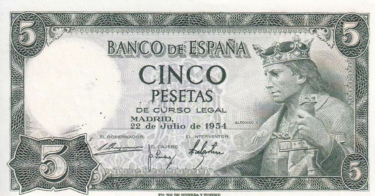 Billet Espagne 5 Pesetas - Alfonso X - 1954 - P.146