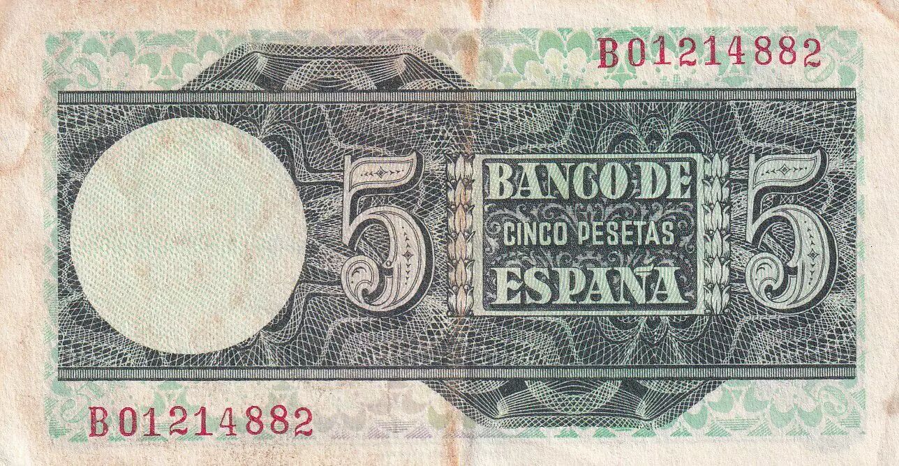 Accueil > Archivage > Espagne 5 Pesetas - Elcano - 1948 - Lettre B - P.136