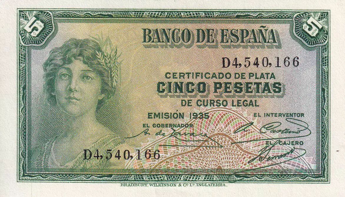Billet Espagne 5 Pesetas - Portrait de femme - 1935 - P.85