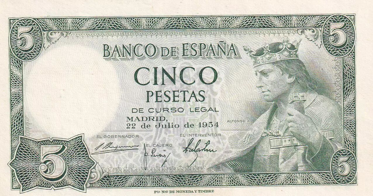 Billet Espagne 5 Pesetas - Roi Alfonso X - 1954 - Lettre N - P.146