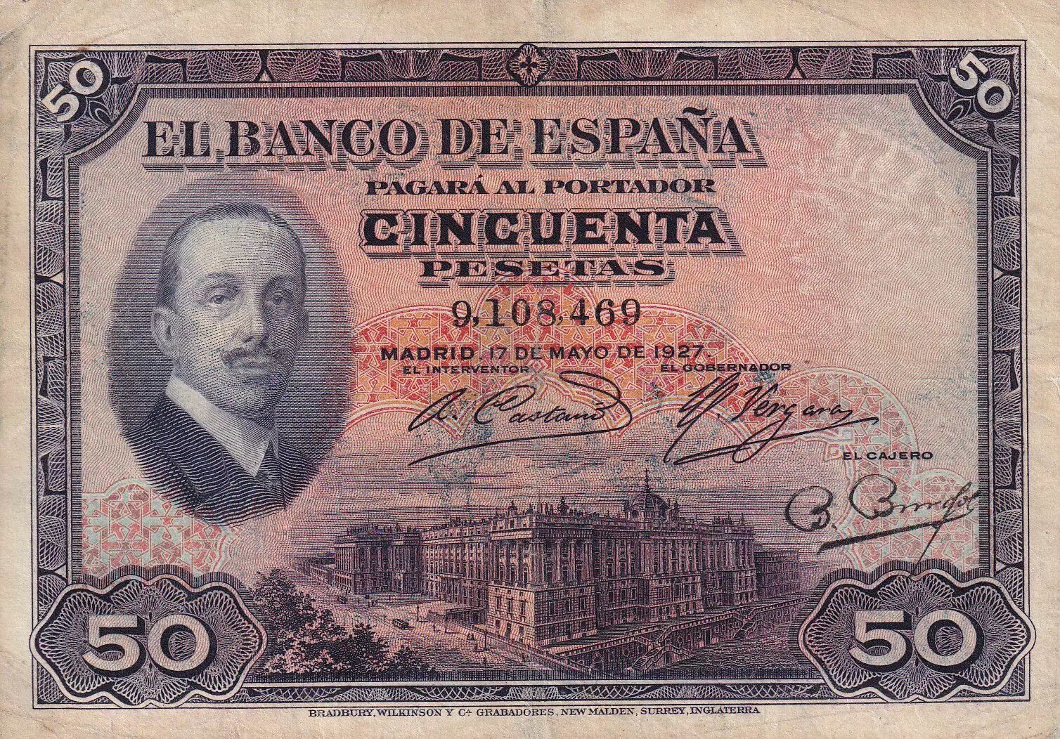 Accueil > Archivage > Espagne 50 Pesetas - Alfonso XIII - 1927 - P.72a