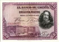 Billet Espagne 50 Pesetas - D. Vélasquez - 1928 - Série C - TTB - P.75