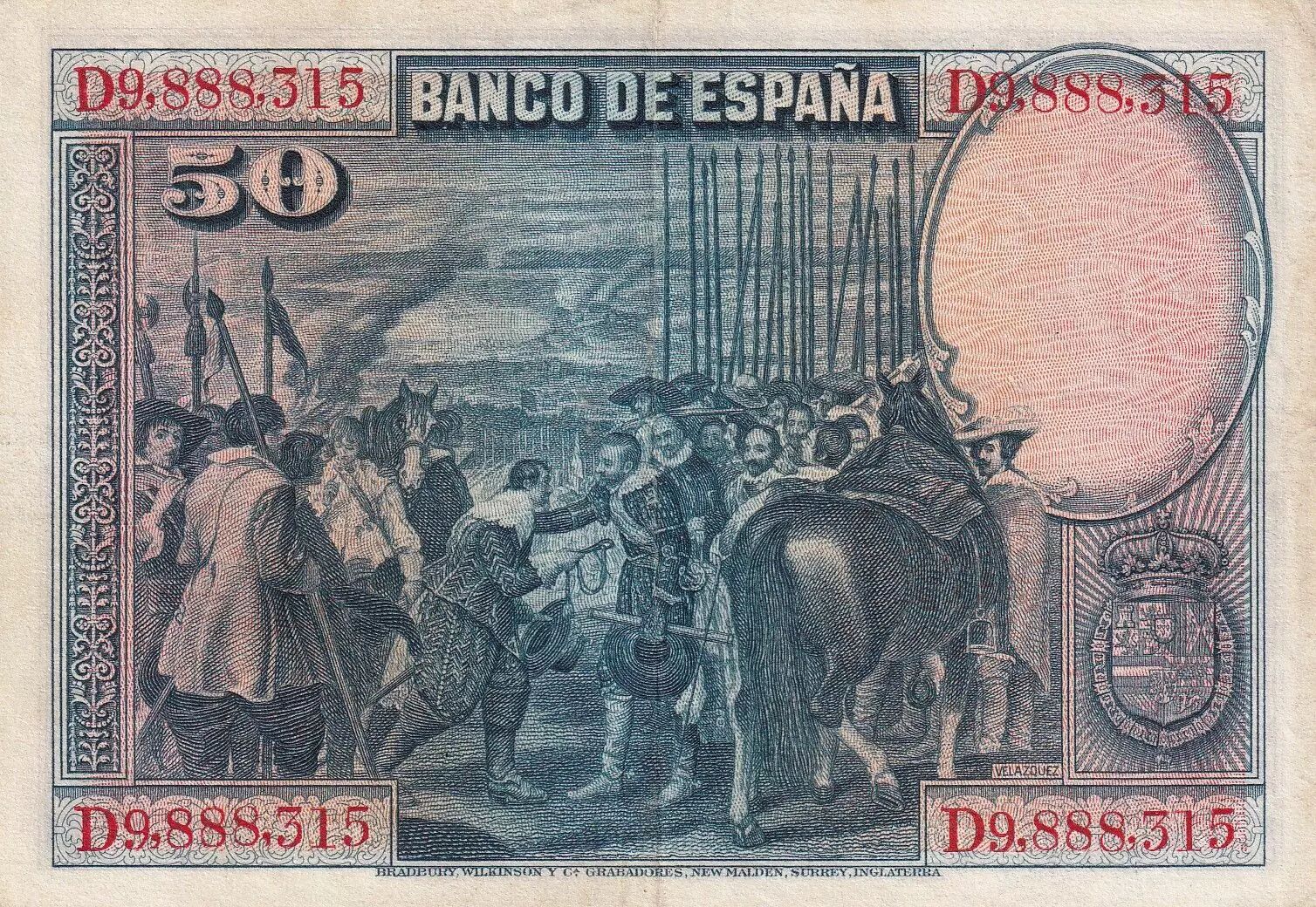 Billet Espagne 50 Pesetas - D. Vélasquez - 1928 - Séries variées - TTB à SUP - P.75