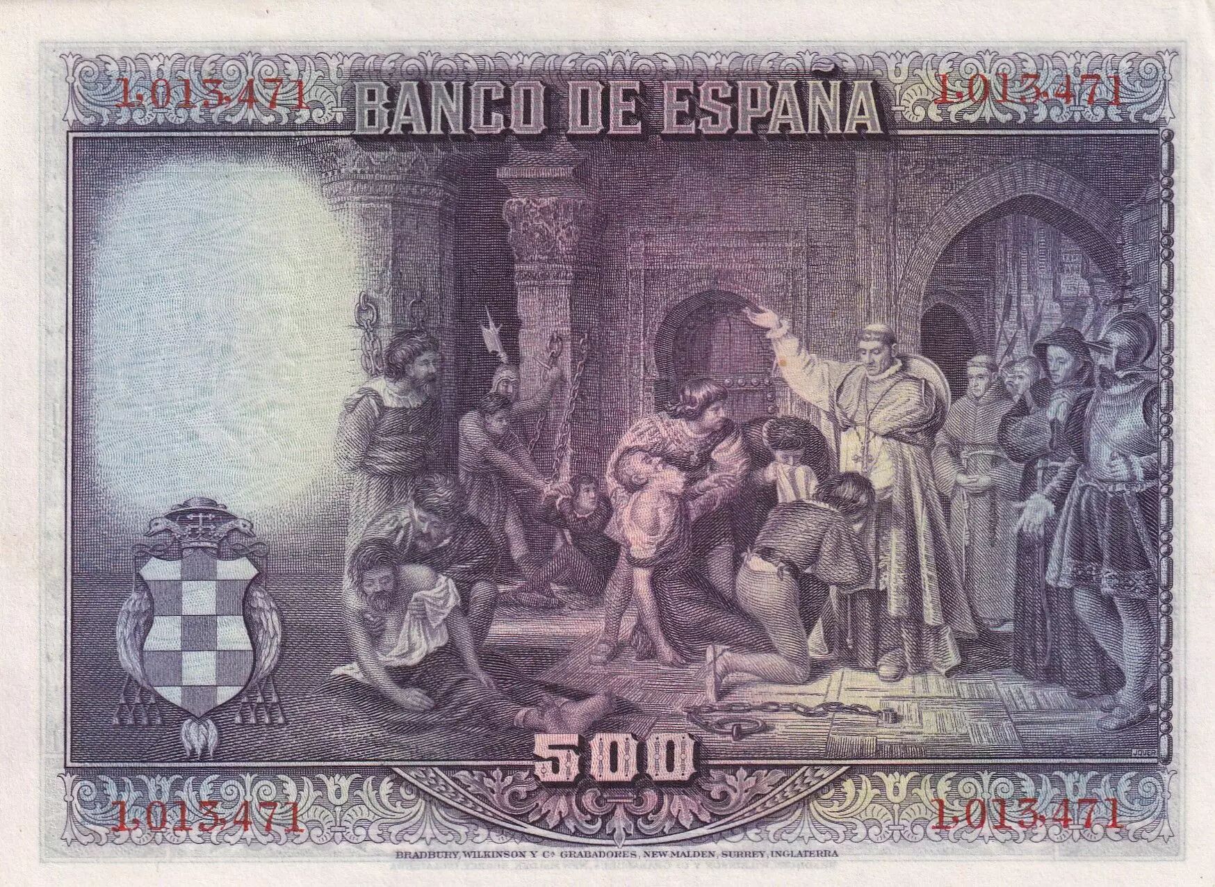 Accueil > Billets du Monde > Billets d'Europe > Espagne > Espagne 500 Pesetas - Cardenal Cisneros - 1928 - sans série