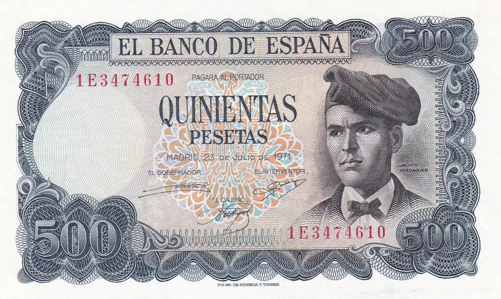 Billet Espagne 500 Pesetas - Jacinto Verdaguer - Village de montagne - 1971 - Série 1E