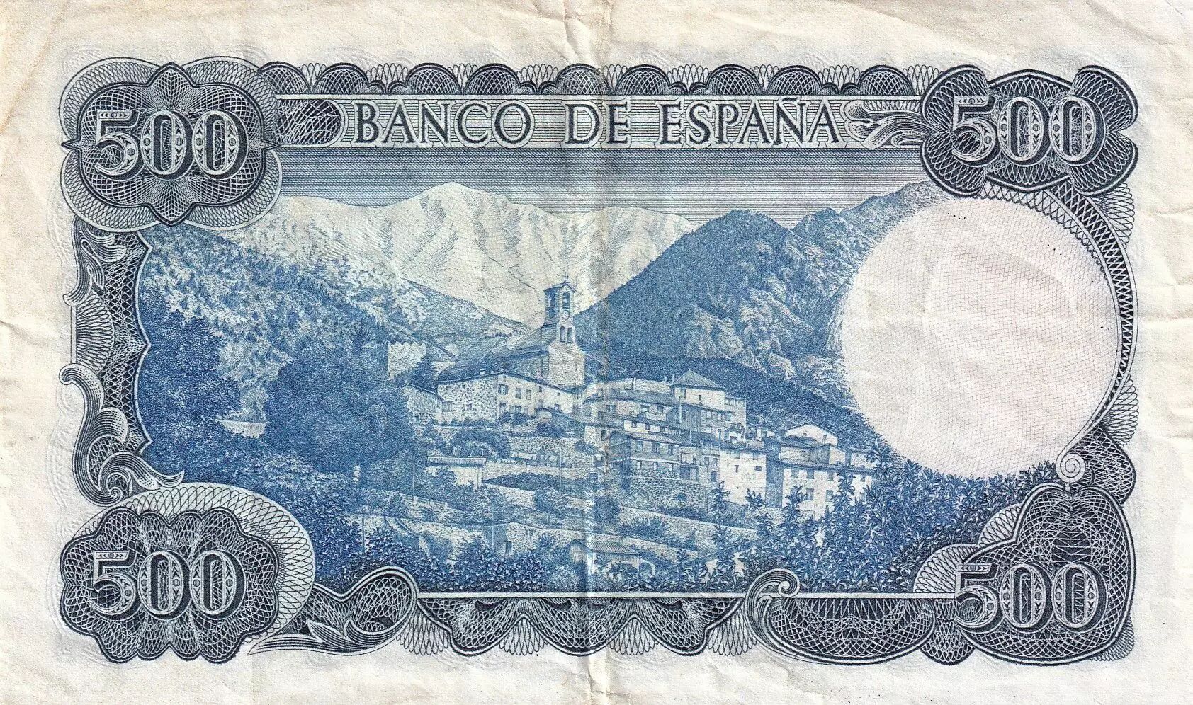 Accueil > Archivage > Espagne 500 Pesetas - Jacinto Verdaguer - Village de montagne - 1971 - Série 1Q - P.153