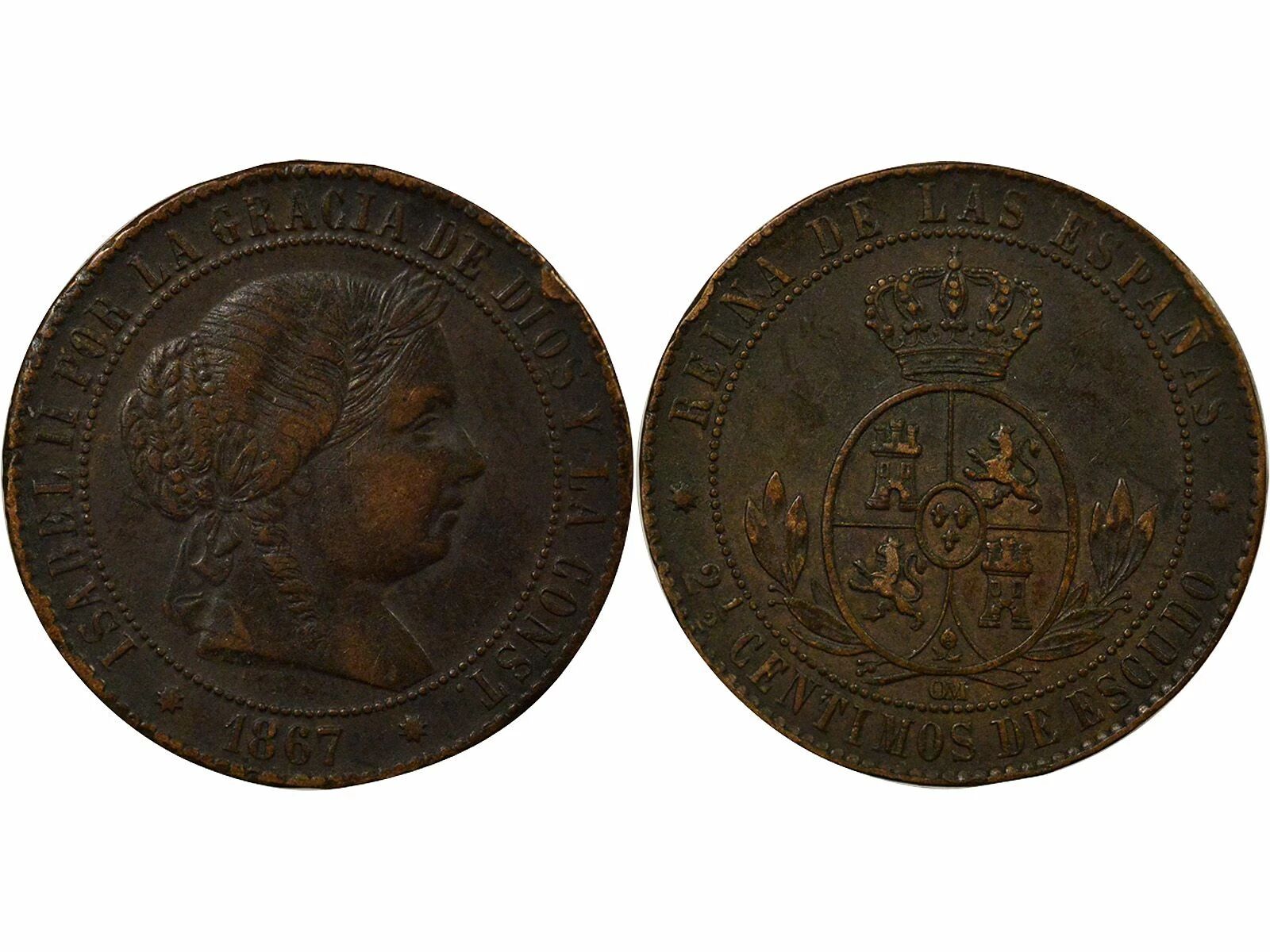 Accueil > Monnaies du monde > Monnaies d'Europe > Espagne > Espagne Isabelle II - 2 1/2 Centimos - 1867 Barcelone