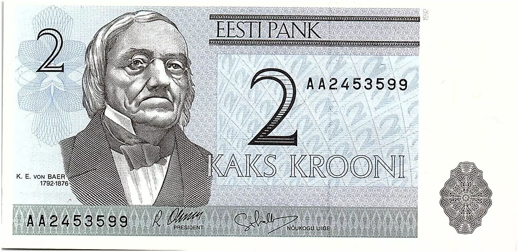 Banknote Estonia 2 Krooni - K.E. Von Baer - University of Tartu - 1992 - P.70 - Neuf