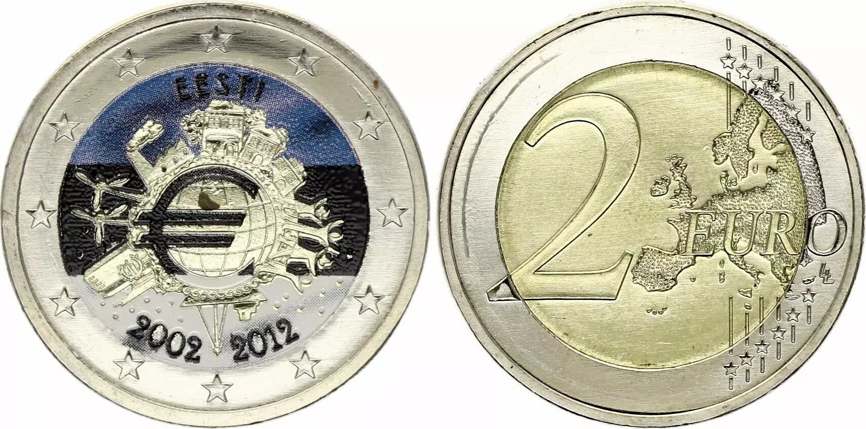 Pièce Estonie 2 Euros - 10 ans de l'Euro - Colorisée - 2012