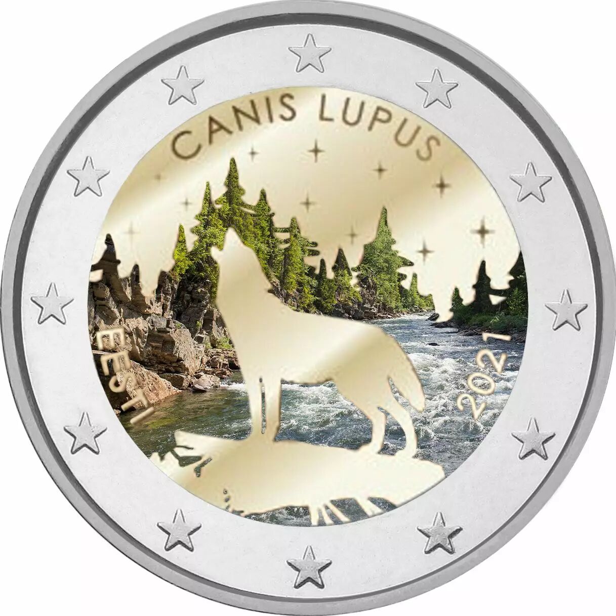 Accueil > Archivage > archivage-Archivage > Estonie 2 Euros Commémo. COULEUR Estonie 2021 - Le Loup (Canis Lupus)