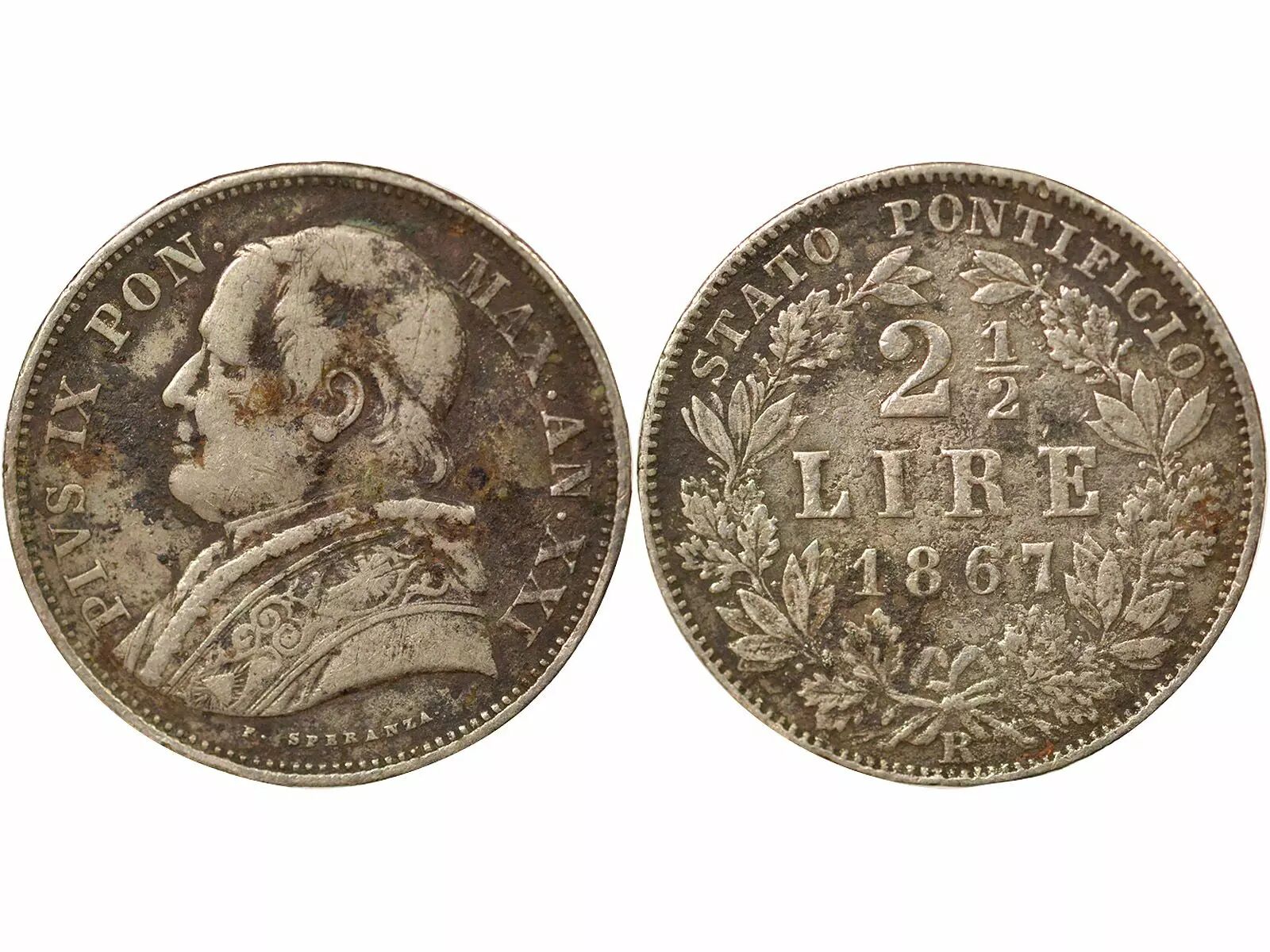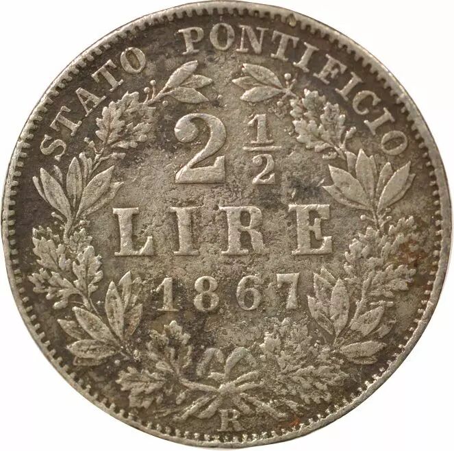 Pièce Etat Pontifical Pie IX - 2 1/2 Lire Argent - 1867 Rome