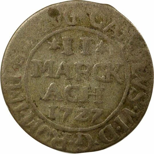 Avers : * CAROLVS . VI . D . G . ROM . IMP . SEM . AVG / * II * / MARCK / ACH / 1727