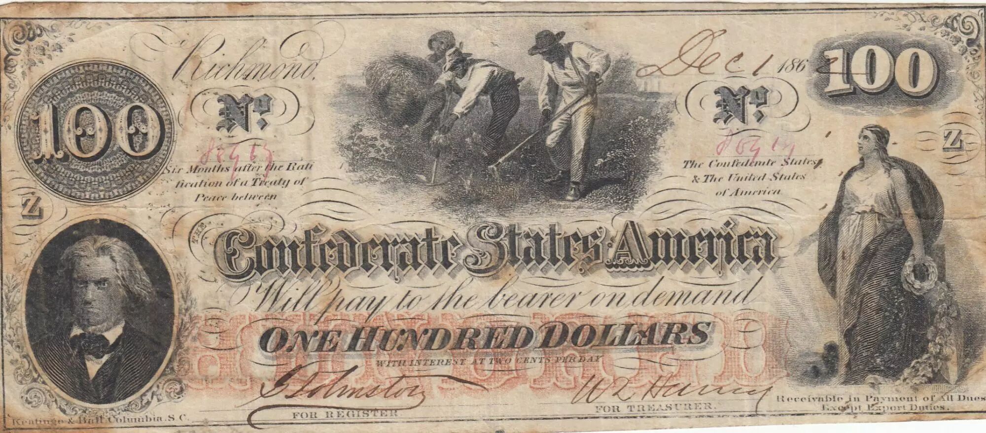 Billet Etats Confédérés d'Amérique 100 Dollars - Etats Confédérés d'Amérique - Richmond - 01-02-1863