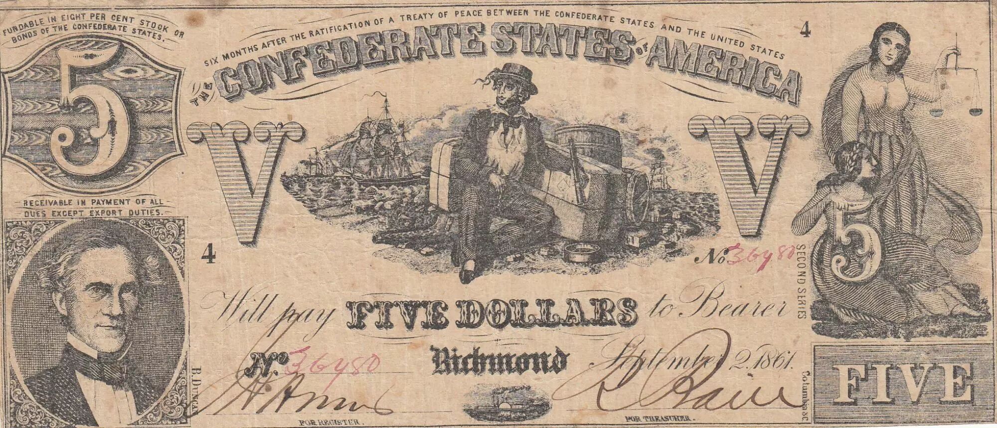 Billet Etats Confédérés d'Amérique 5 Dollars - Etats Confédérés d'Amérique - Richmond - 02-09-1861