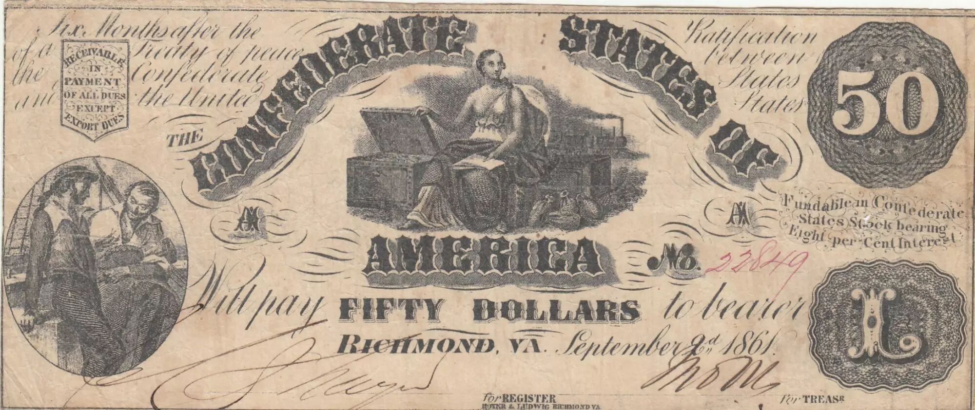 Billet Etats Confédérés d'Amérique 50 Dollars - Etats Confédérés d'Amérique - Richmond - 02-09-1861