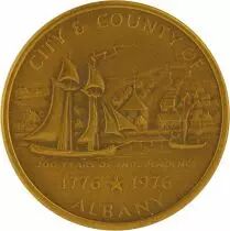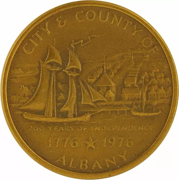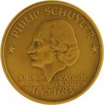 This medal commemorates Philip Schuyler and the American Revolution Bicentennial in 1976, featuring a bronze composition. It is a great addition to any collection of medals and coins, especially for those interested in the historical significance of Albany, New York during the Revolutionary War. The design is intricately detailed, showcasing the bravery and patriotism of Schuyler and his contributions to the American cause.