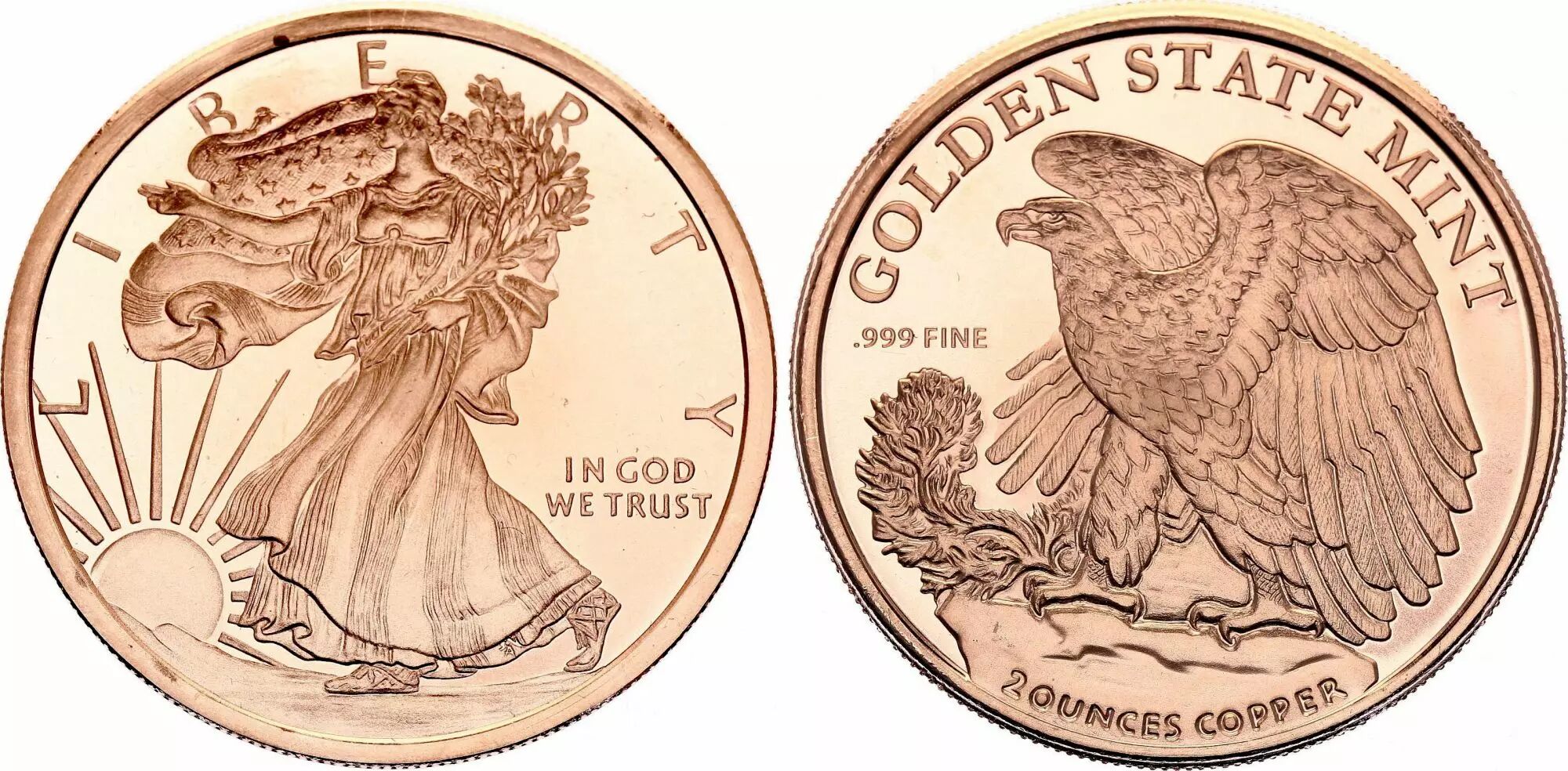 2 Copper "Walking Liberty" OuncesCopper 999? - 62,2 g - Ø 47 mm - Brand New
