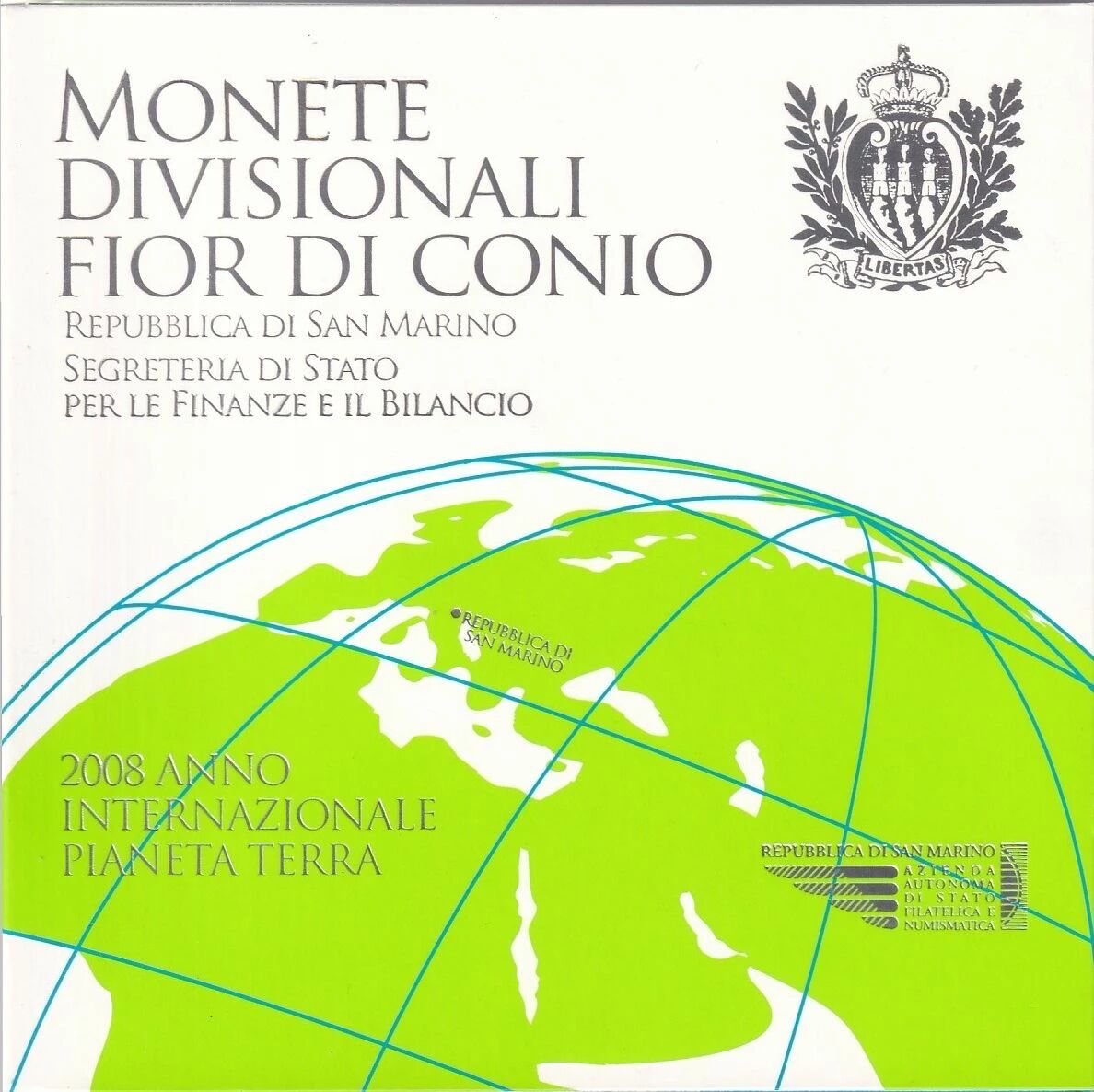 This numismatic set features a series of nine coins from the Republic of San Marino, minted in 2008. The series is presented in official Mint packaging, designed for the preservation and presentation of the coins.