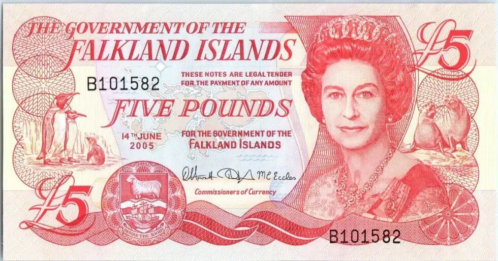 Home > > Falkland Islands 5 Pounds Elizabeth II, penguins - Village - 2005 - UNC - P.17