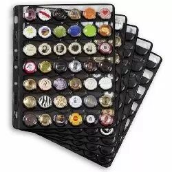 5 black COMPART refills, each for 42 Champagne lids or beer caps per page. Easy to use: simply insert the Champagne cork/beer caps into the slots on the back of the sheet. With 5 black dividers to protect each sheet.