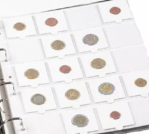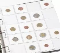 Feuilles en PVC transparent exempt de plastifiant acide pour grand classeur HARTBERGER. 4 perforations, 20 cases pour étuis numismatiques 50 x 50 mm. Paquet de 10 feuilles.